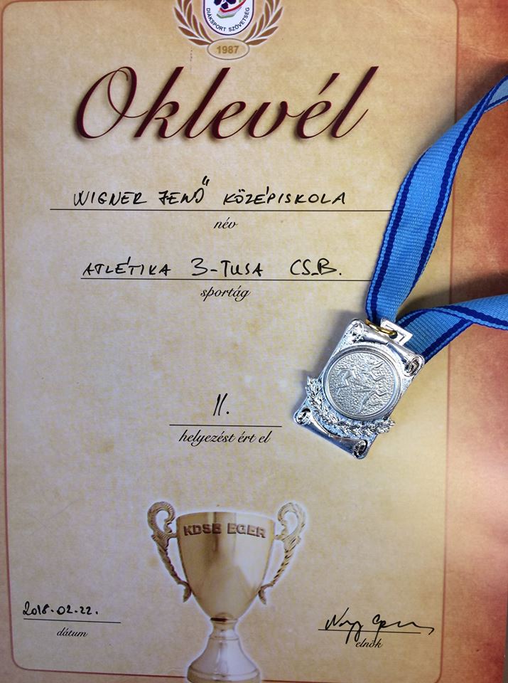 Az MDSZ által szervezett városi Atlétika Háromtusa versenyen február 22-én II. helyezést ért el a Tanka Norbert (12.B), Kovács Patrik (12.B), Bordás Csaba (12.B), Lénárt Márk (10.B) és Nagy Bence (10.B) alkotta Wigneres csapat.