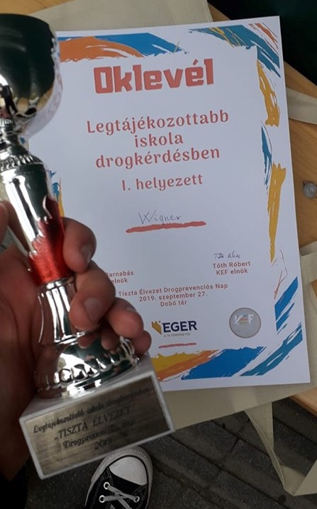 A Tiszta Élvezet Drogprevenciós Nap keretében megrendezett iskolák közötti vetélkedőn a Wigner csapata I. helyezést ért el. A csapat tagjai: Visontai Zsolt, Sári Mónika, Dobos Alexandra, Kis Dávid, Kiss Zoltán, Józsa Arnold, S. Nagy Szabolcs, Kós Gábor, Angalét Ferenc, Tóth Norbert. Gratulálunk!