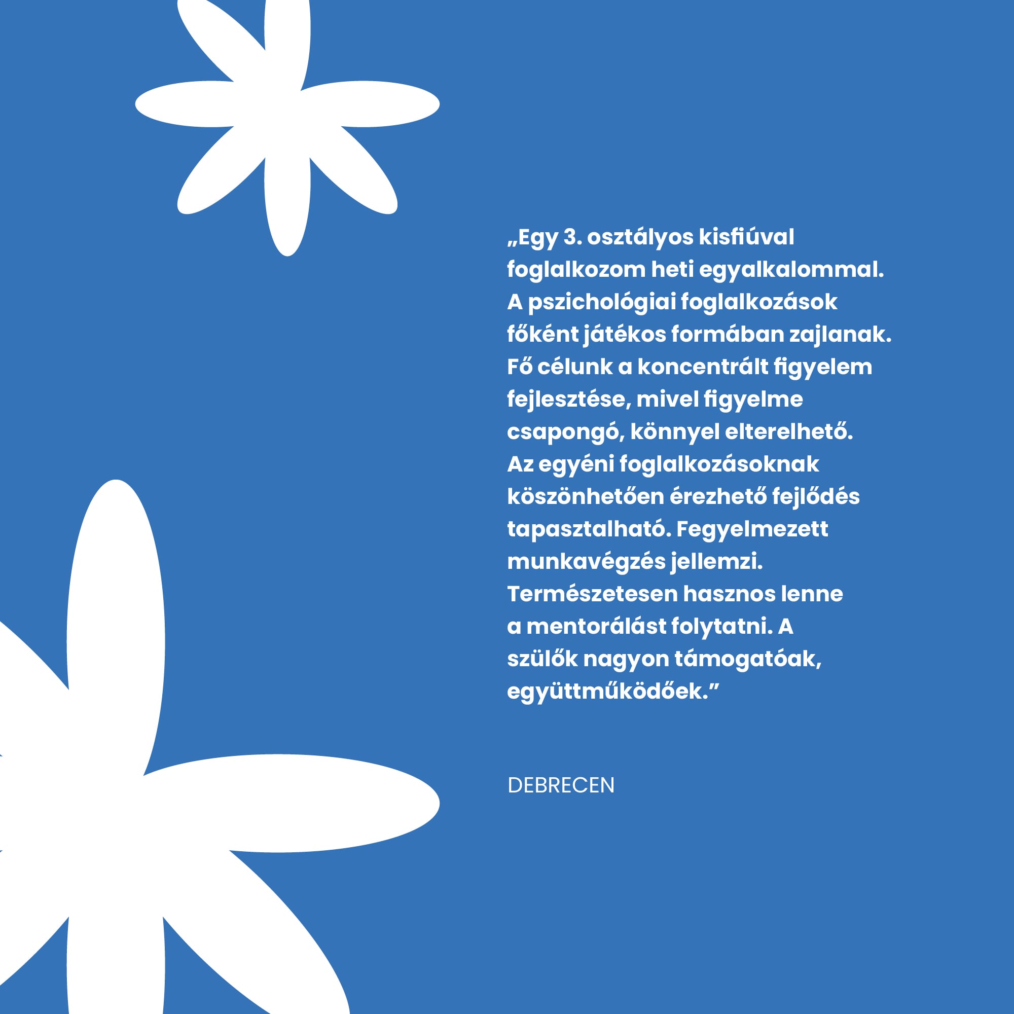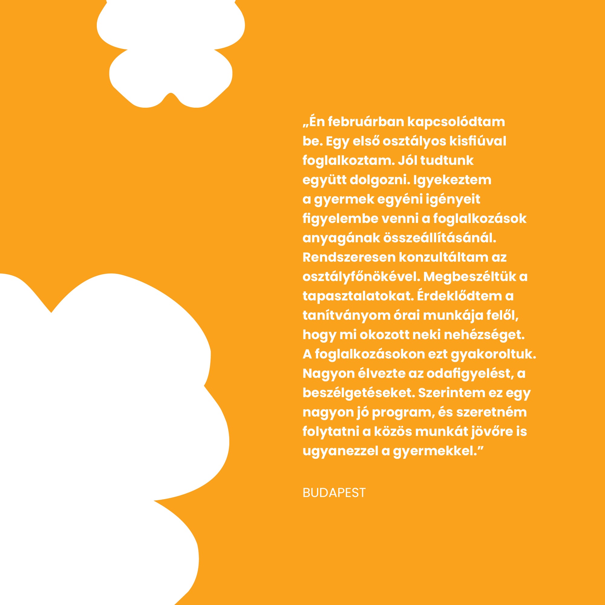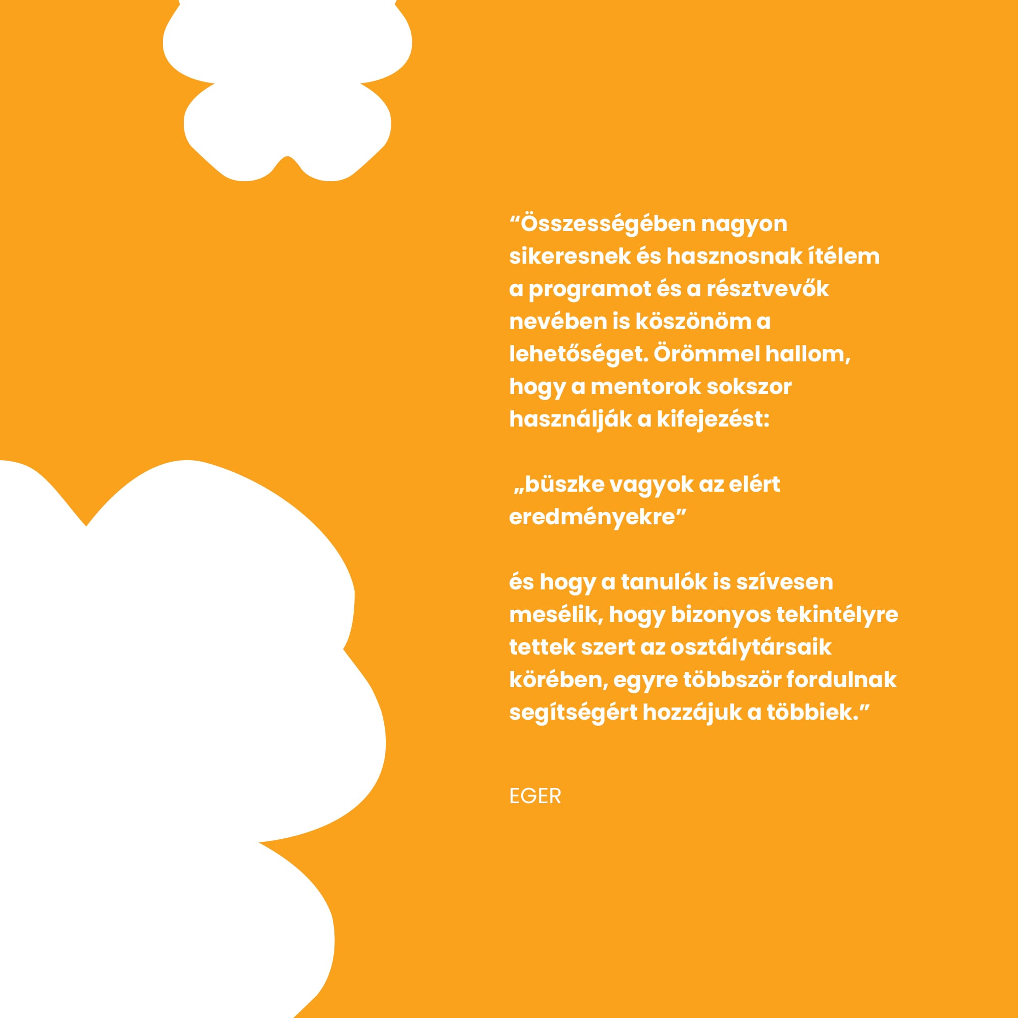 Az ezen segítő tevékenységekben szerzett tapasztalatok nyomán jött létre 2022-ben a mentorprogram, melynek célja, a változatos okokból hátrányos helyzetbe kerülő, ámde tehetséges gyermekek tanulmányi támogatása. A program célja, hogy ezek a diákok is kiemelt figyelmet kaphassanak különórák és anyagi támogatás révén. 2024-re, 10 iskolával együttműködve már több, mint 100 gyermek tanulmányait segíti az alapítvány.